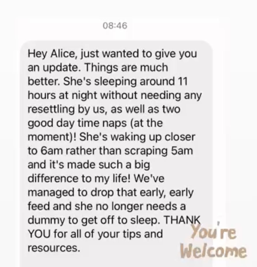 Additional one-on-one support is unavailable at this time. This digital product is a 100% self-guided approach to sleep teaching and your purchase does not include any 1:1 support.